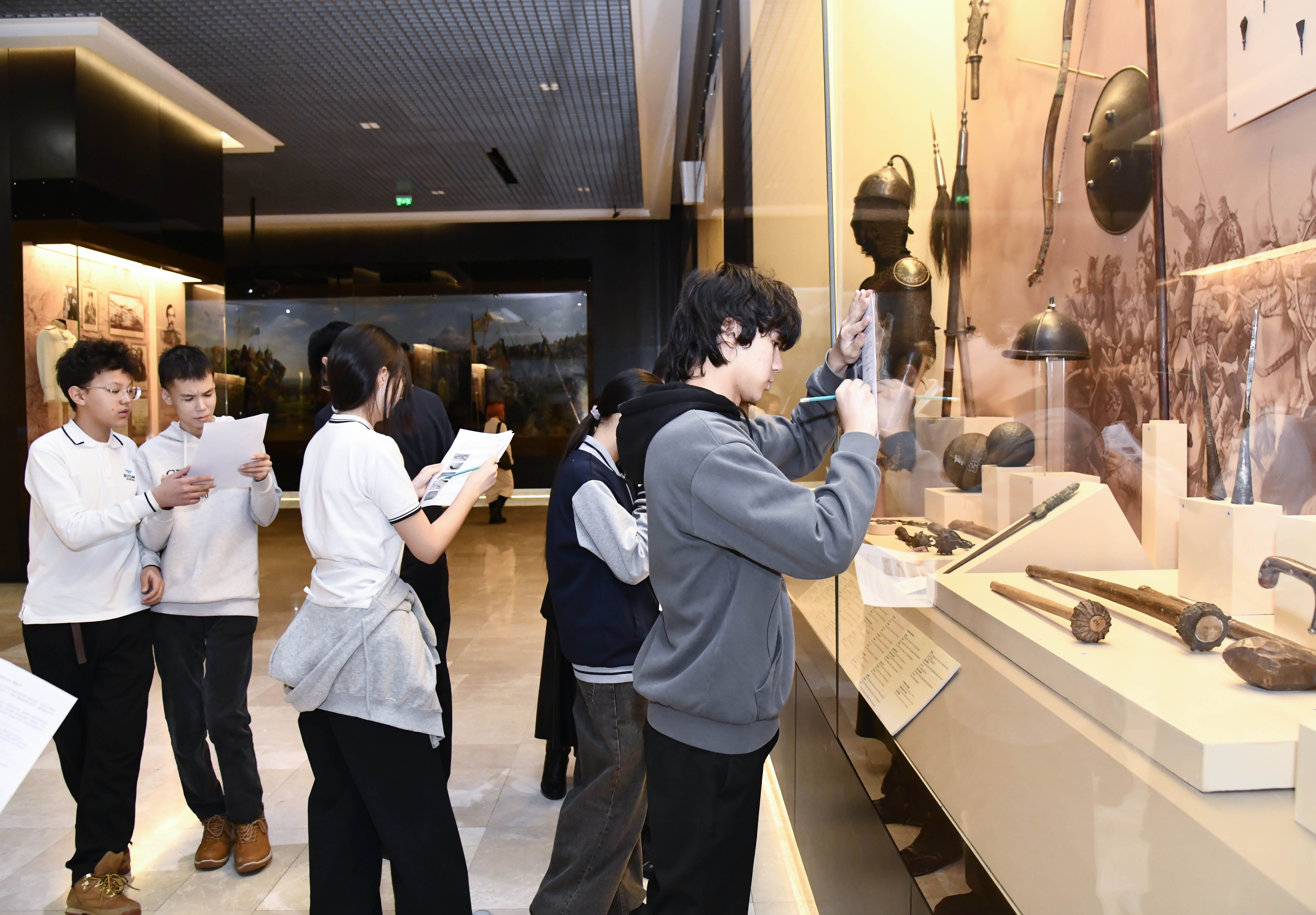 During the lesson, students learned interesting facts about valuable exhibits in the «Ancient and Medieval History» and «History of Kazakhstan» halls, searched for artifacts, and solved crossword puzzles.
