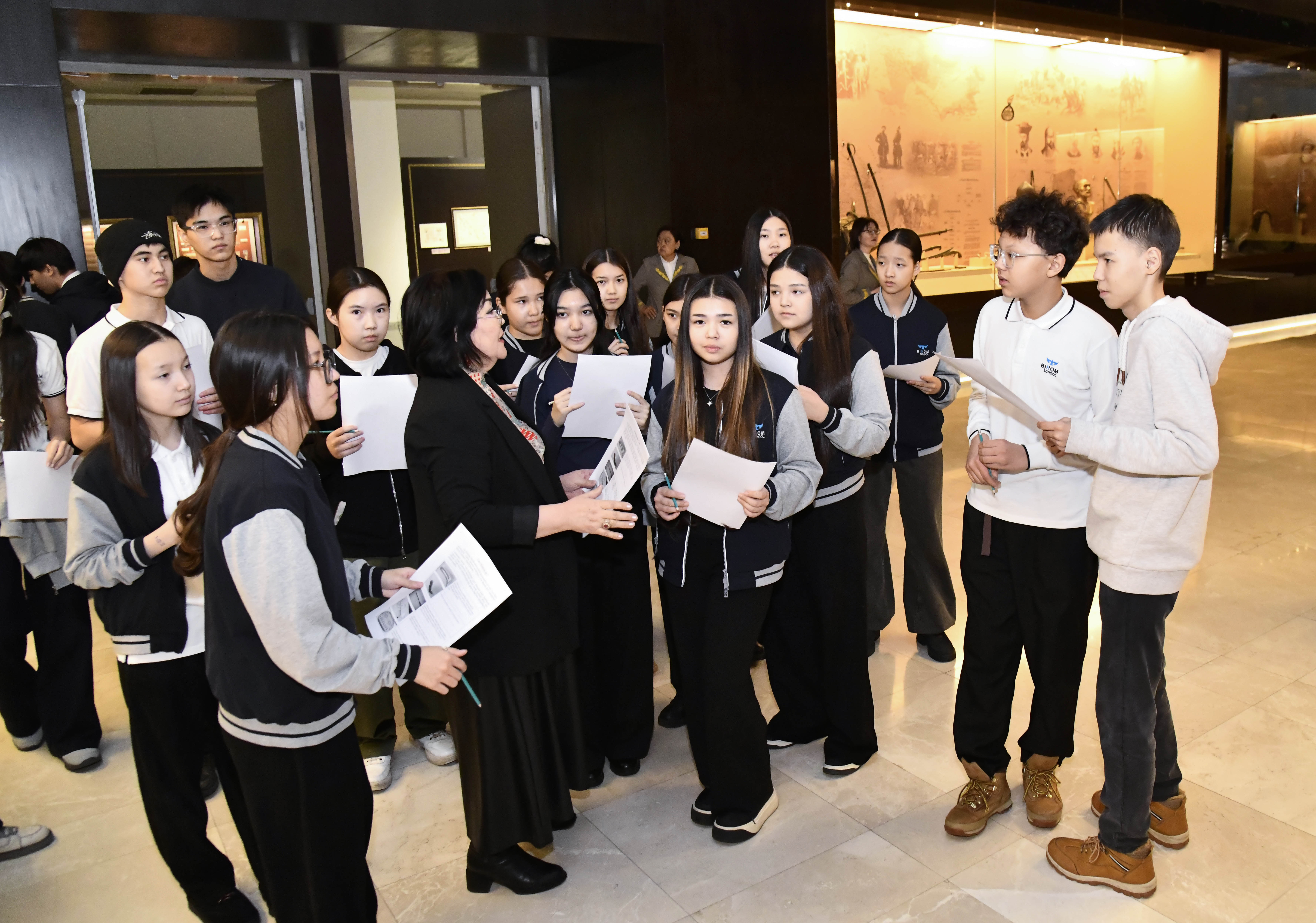 Ұлттық музейдің Музей педагогикасы және балалар шығармашылығы бөлімі «Шаңырақ» жобасы аясында А. Байтұрсынов атындағы BINOM мектеп-лицейінің 8-сынып оқушыларына арналған «Ұлт құндылығы – жәдігер» атты квест сабағын өткізді.